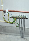 - rörledningar av metall som förs in i byggnaden, till exempel gas- och vattenledningar