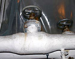 Det finns ofta asbest i de lindningar som gjordes kring ventiler, rörböjar och skarvar.