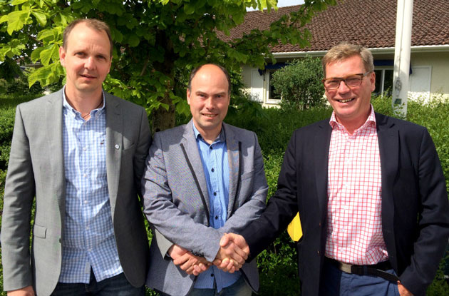 Bravida Prenads regionchef Mats Karlsson och avdelningschef i Perstorp Joakim Leijon tillsammans med MO Services vd Rickard Olsson.