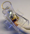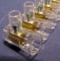Toppklämmans hylsa är vid och skruven smal. Det gör att toppklämman inte tillförlitligt klämmer fast ledarna mellan metallytor.