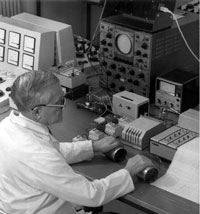 Nästan 83 år gammal har den internationella auktoriteten på jordfelsbrytare och elsäkerhet gått ur tiden. Bilden visar hans berömda provningar för att visa jordfelsbrytarens skyddande egenskaper.