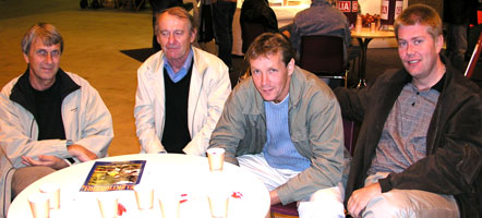 Kjell Hedlund, Tore Edlund, Kjell Krantz och Kjell-Åke Klockervold som alla jobbar med el på Sandvik var lite matta efter Elektroskandias fest. – Vi mådde bättre igår, säger Tore.