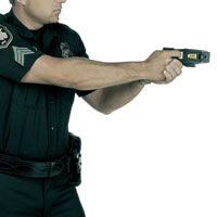 Pistolen så att man skjuter iväg två elektroder. I spetsen på dessa sitter två sylvassa nålar på 1,5-2 centimeter. Det spelar ingen roll om de tränger igenom huden eller fastnar i kläderna. Men om den ena av de två elektroderna missar målet försvinner självklart effekten.