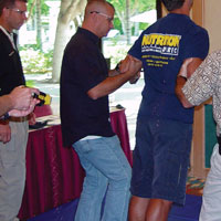 Alho verkar vara en tuffing för han har provat den djävulska manicken på sig själv för att få uppleva effekten av stöten som elpistolen ger.
