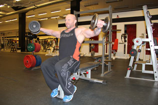 Många elektriker drabbas av belastningsskador i axlarna. Installationsarbeten sker ofta i påfrestande arbetsställningar med armarna över axelhöjd och det sliter på både leder och muskler. Därför är det viktigt att tänka på hur man jobbar. Du kan också minska risken för problem genom att träna upp axelmuskulaturen. Elbranschens mest vältränade axlar sitter på kroppsbyggaren Mikael Gumse på Big Power Kraftinstallationer. Han rekommenderar tre bra övningar för att träna upp axlarna.