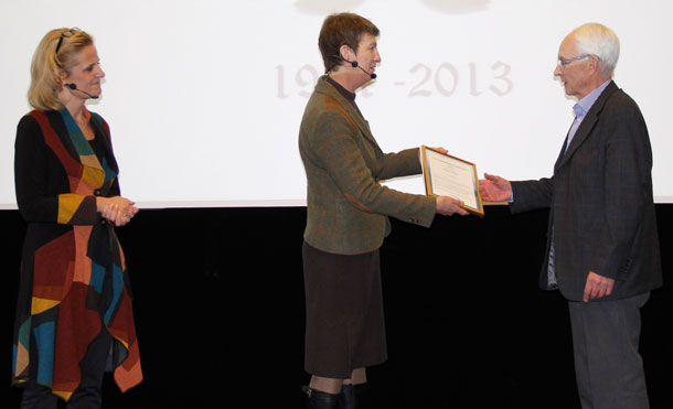 Astrid Westfeldt Corneman och Elisabet Falemo delar ut årets elsäkerhetspris till William Persäter