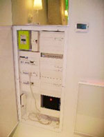Installationen var utförd så att elförsörjningen var framdragen på vanligt sätt till armaturer etc. medan styrningen, et vill säga strömbrytaren, enbart hade trådlös förbindelse till armaturen. Med en fjärrkontroller kunde man därigenom enkelt programmera – och enkelt ändra – vilken strömbrytare (sändare) som skulle styra vilka armaturer. Lösningen är ju inte helt ny och finns även hos andra tillverkare. Den bör ha en klar fördel i utrymmen där det kan bli aktuellt att flytta väggar och göra ombyggnader då och då, och med den här lösningen krävs bara en mycket enkel omprogrammering. Från elsäkerhetssynpunkt ser jag det också som en fördel, eftersom olika icke behöriga amatörer annars kan frestas att obehörigt dra om ledningssystem vid smärre ändringar.
