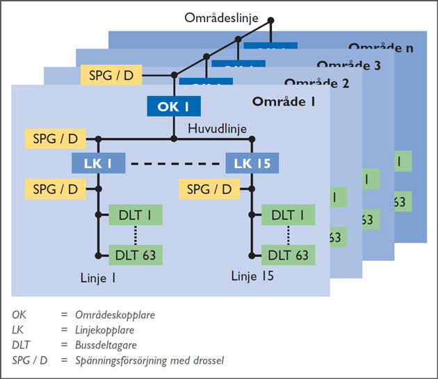 För att skapa reservutrymme för framtida utökningar rekommenderar vi att begränsa antalet anslutna apparater till ca 50 apparater per linje.